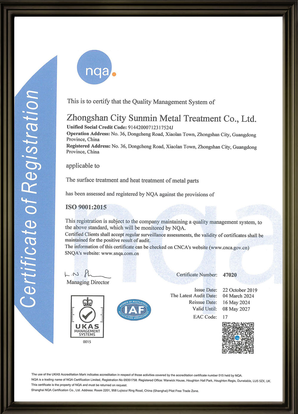 • ISO 9001:2015認證